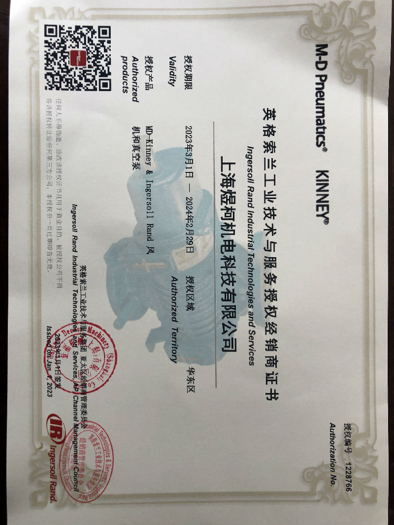 當前位置:首頁 ? 煜柯資訊 ? 英格索蘭Ingersoll-Rand風機和真空泵授權證書