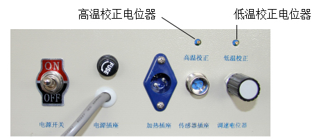 1、在儀器的后面板找到高溫校正電位器和低溫校正電位器,見下圖。