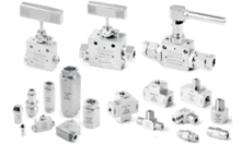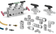 通用儀表閥門和接頭,產品接口尺寸范圍:1/16"至2",最大工作壓力為10,000psi,使用溫度為-54℃至649℃,主體材料可選各種不銹鋼、合金、尼龍及PTFE等。