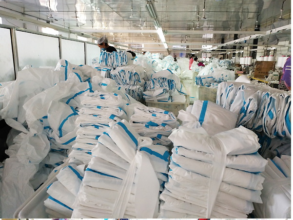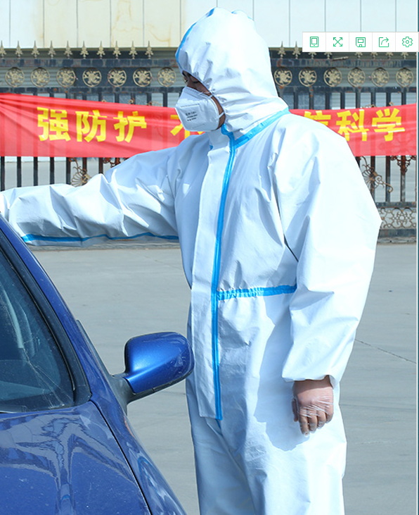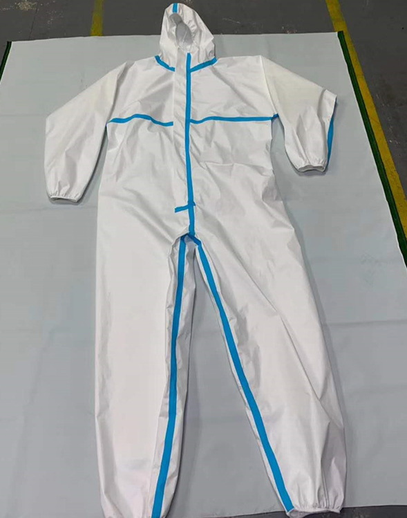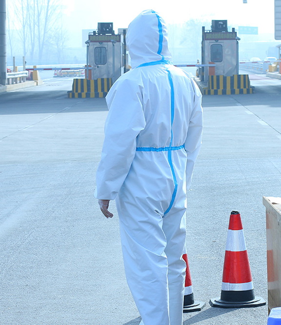 防護服由帽子,上衣,褲子三連體組成,可以根據客戶要求單獨配SMS高檔隔菌鞋套,也可以根據需要做成四連體,即帽子上衣褲子鞋套四連體。大多客戶喜歡把鞋套和褲子分開穿用。(鞋套單放穿脫方便)。帽子的臉部有松緊帶,能更好的使帽子貼近臉部,腰里有松緊帶使防護服更貼身。隔菌,防水,透氣,質地柔軟,是醫療防護高級醫用無紡布,里層是40克高檔長絲無紡布,外層膜有一層20克的單方向透氣PE膜。特點:人體的汗氣可以向外散發,而外面的有害氣體和水分卻不能侵入,這樣的透氣膜無紡布做成的防護服集透氣,防護,隔菌。