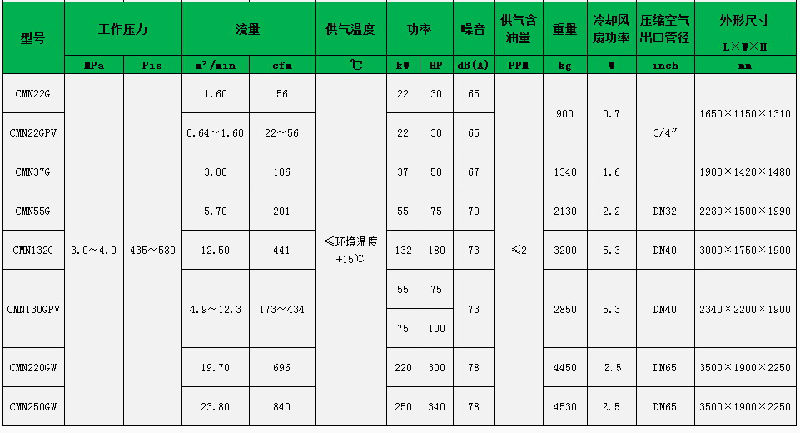 二級壓縮螺桿式空壓機,振動小,噪音低,泄漏量少,效率高,相同功率產氣量大。