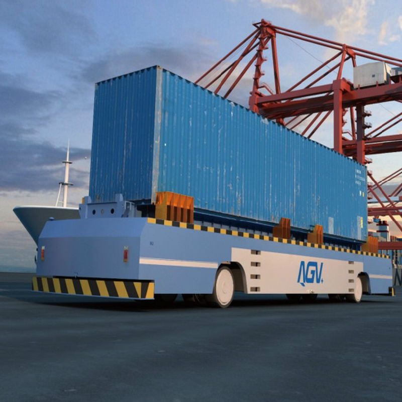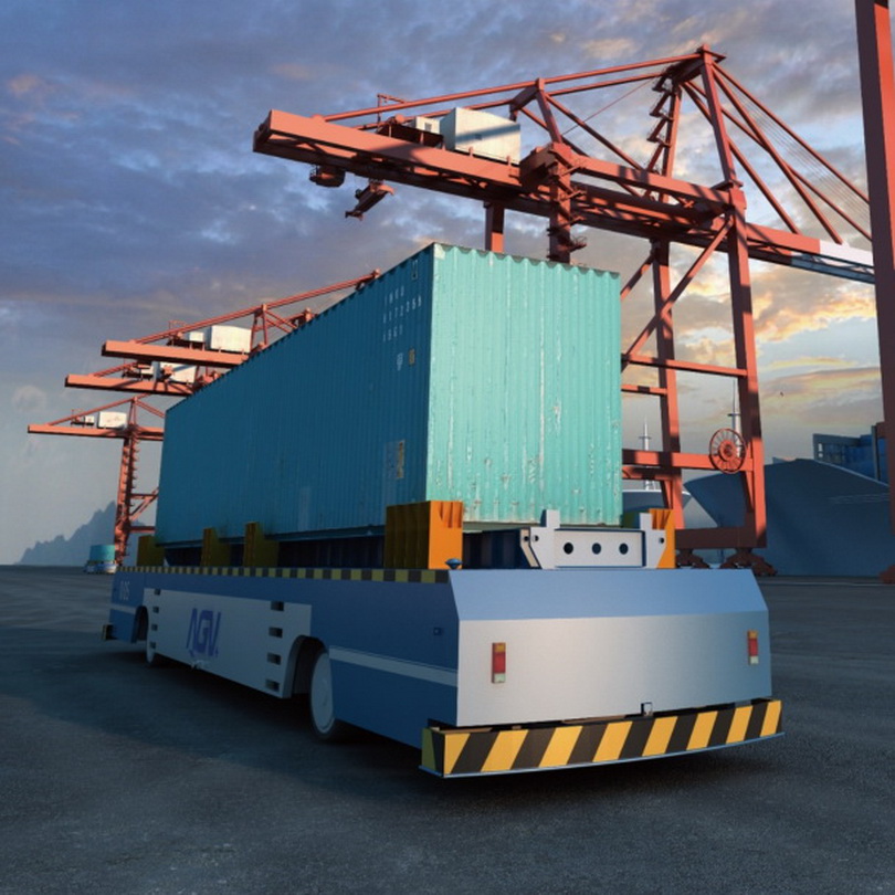 自動化港?重載 AGV 系統可實現集裝箱碼頭岸橋與堆場之間的水平運輸。該系統能夠
