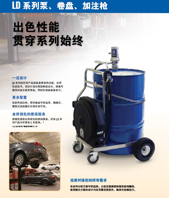 固瑞克Graco的LD系列泵、卷盤、加注槍的特點:
